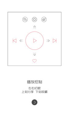 1. 纯手势操作:播放界面采用全手势操作,左右滑动切换歌曲,上下滑动分别进行分享和收藏,操作便捷流畅。