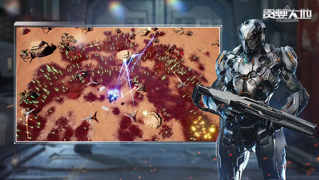 《贪婪大地先行服》作为一款移植自端游的精品动作射击手游,以俯视上帝视角构建了充满科幻感的异星战场。玩家将操控动力装甲机甲,在热带雨林、荒芜沙漠、冰封雪原三大特色地图中,与铺天盖地的虫族展开生存对抗。游戏融合Roguelike元素与角色养成系统,通过击杀敌人获取资源强化机甲性能,支持无尽模式、快速模式等多样化玩法,更提供双人联机功能,打造出兼具策略深度与爽快感的肉鸽割草体验。