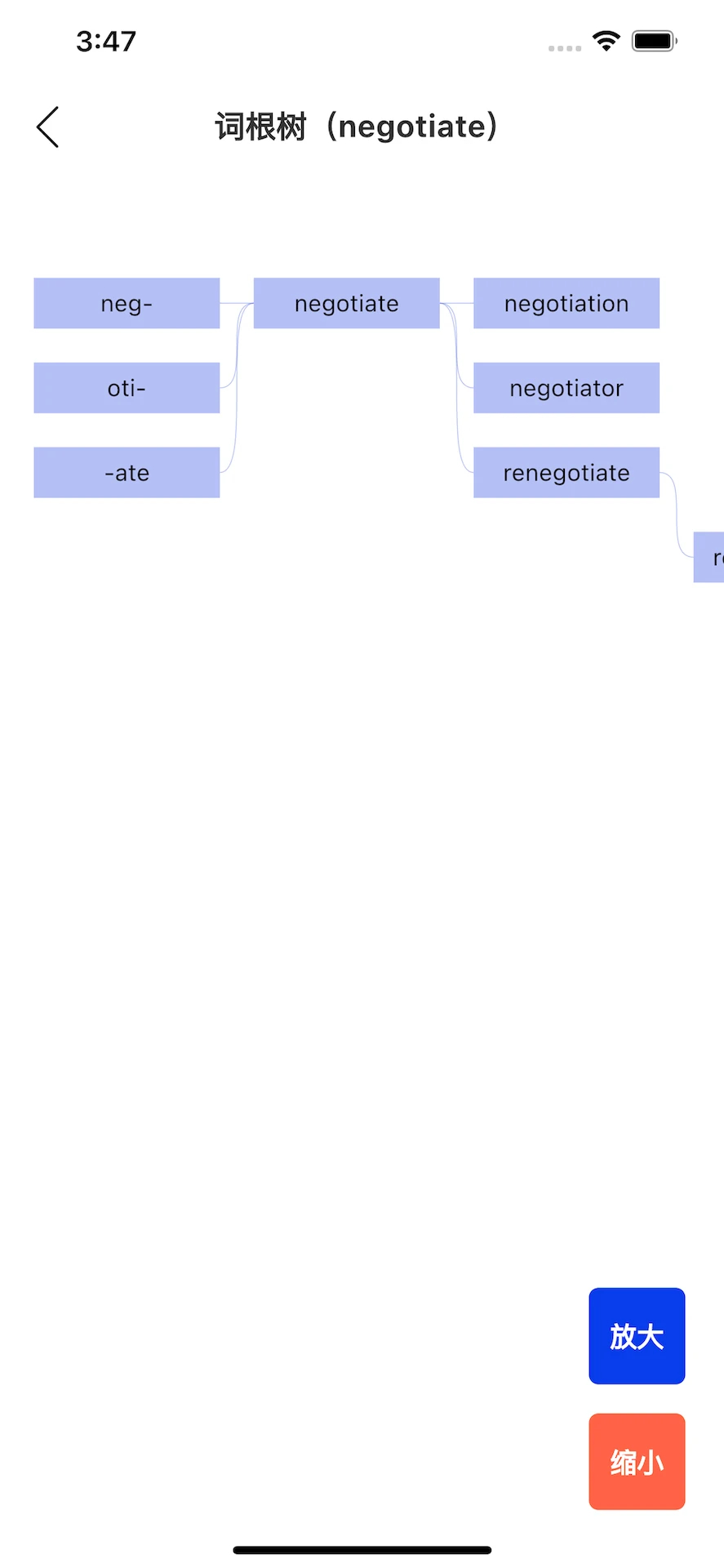 词根词缀词典全新版本是一款专为安卓用户设计的英语学习工具,它通过科学解析英语单词的词根、词缀与词源,帮助用户快速掌握词汇构成规律,实现高效记忆。该软件不仅覆盖四六级、考研、雅思、托福等主流英语考试的高频词汇,还整合了近万条含词根的单词与千余条核心词根,构建完整的词汇知识体系。其独特的记忆模式结合经典例句、名著引用及趣味练习,让单词学习从枯燥背诵转变为场景化理解,尤其适合备考冲刺或长期提升英语能力的用户。