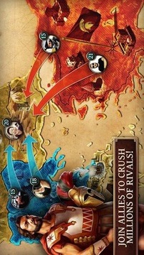 3. 战斗操作:战斗采用类似回合制的卡牌对战模式,玩家可以在战前阶段进行布阵,战斗时双方队伍在屏幕上相互行进并边走边打。玩家需要辅助操作,如破坏敌人投来的巨石、及时点击宝箱或暗器、释放士兵的怒气攻击等。