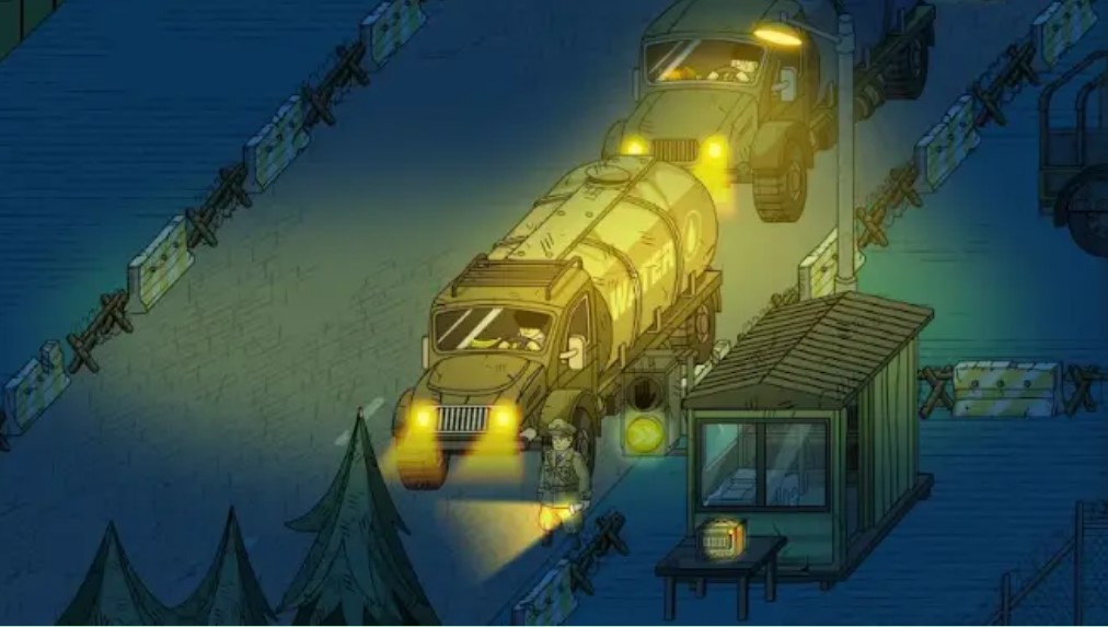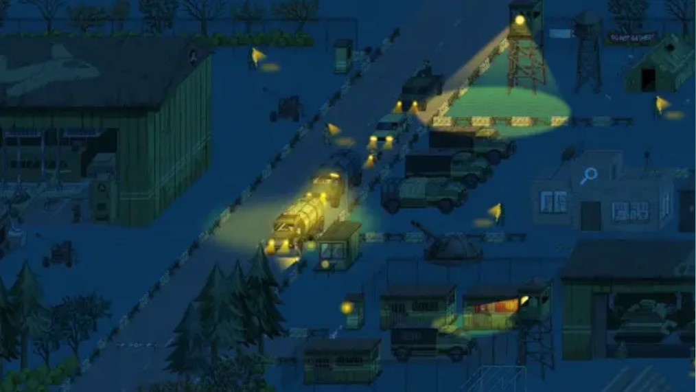 5. 环境互动解谜:部分关卡需利用场景元素完成任务。例如,在哨塔监控区域,通过调整瞭望镜角度发现隐藏走私路线;在坦克维修区,检查装备文件以防止非法改装。