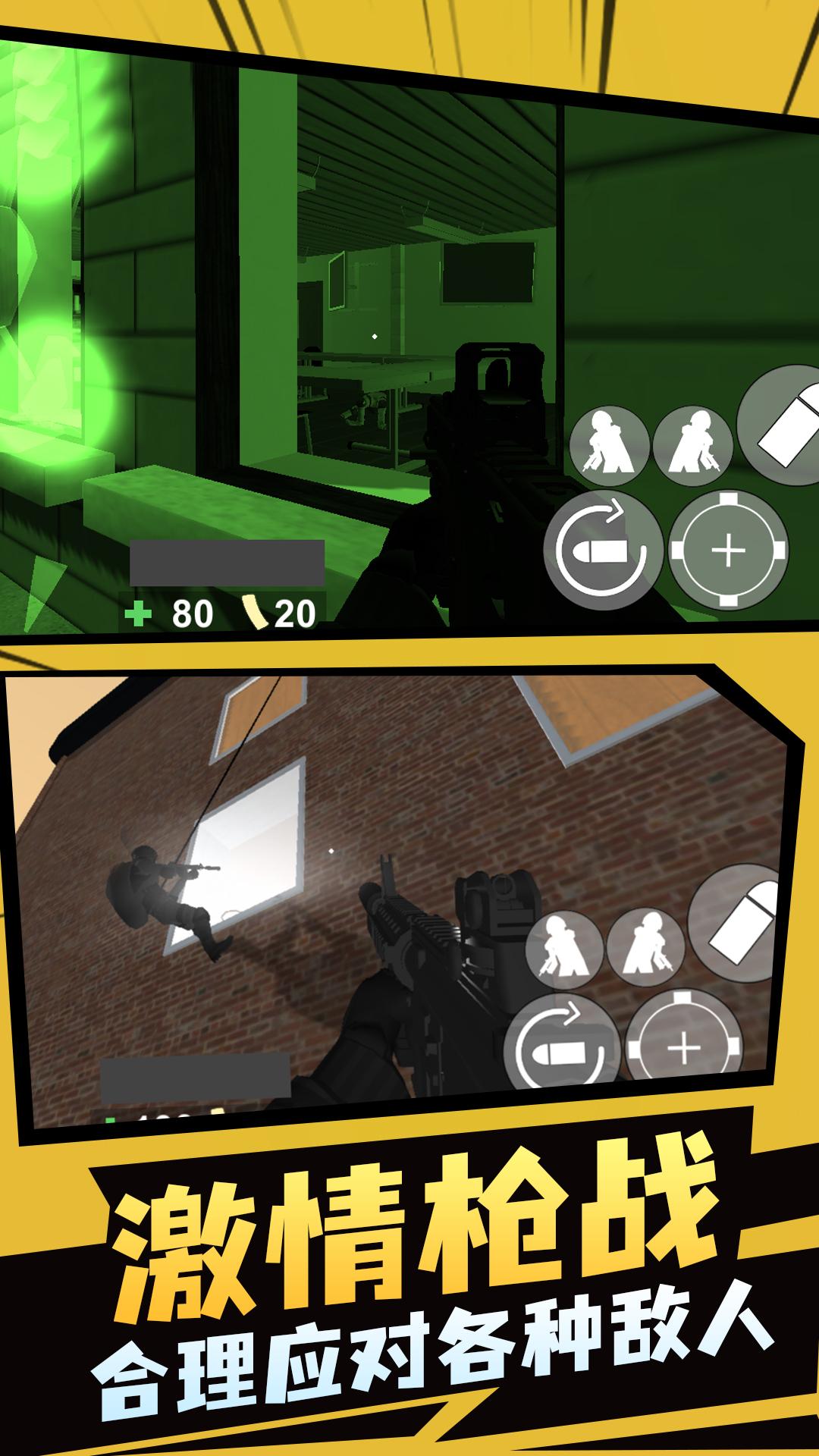 4. 多模式社交玩法:除单人模式外,游戏支持4人组队合作与8人对抗模式。组队模式下,玩家可通过语音沟通制定战术,如分配狙击手、突击手等角色;对抗模式中,玩家需与其他玩家扮演的恐怖分子展开实时对战,考验团队协作与应变能力。