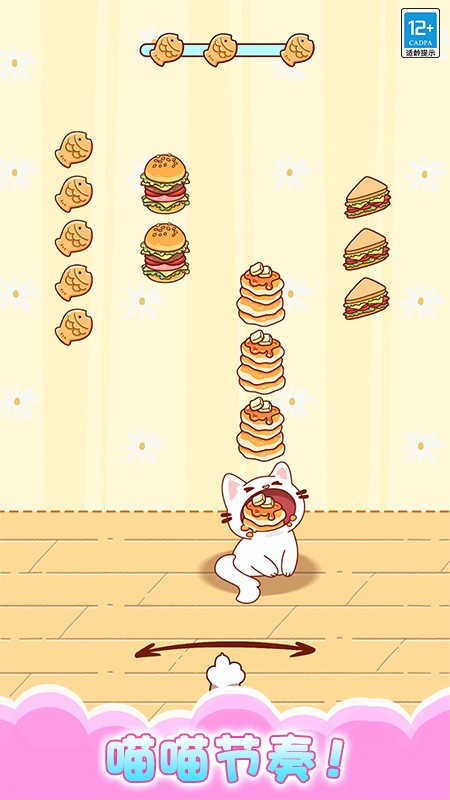 1. 节奏预判:在关卡开始前,先观察美食下落的初始位置与音乐前奏的节奏,提前规划小猫的移动路径。例如,在电子音乐关卡中,高频节拍对应的美食下落速度更快,需提前将小猫移动至中心区域待命。