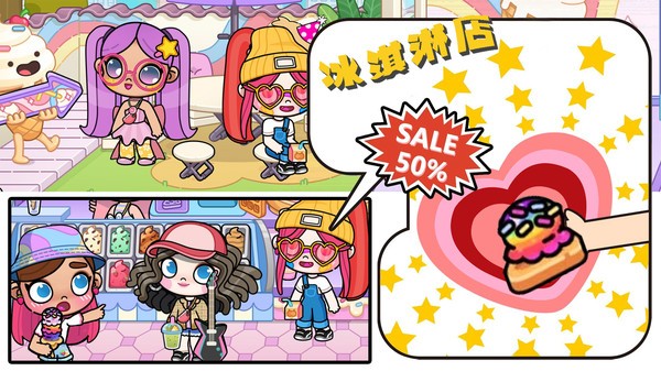 3. 社交场景探索:开放美食餐厅、公寓、美发沙龙等十余个场景,玩家可在SPA沙龙为角色进行面部护理,或在服装店试穿上百亿种脸型搭配的服饰组合。