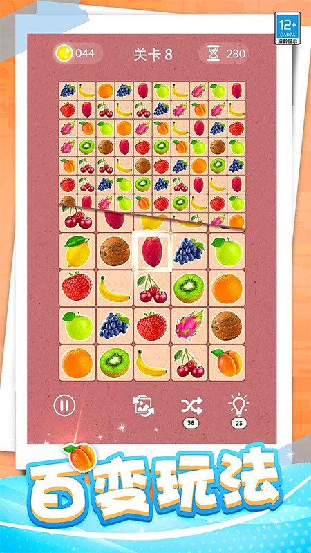 1. 核心玩法创新:在传统连连看基础上,新增“路径转折限制”机制,每个连接最多允许两次转向,大幅提升策略深度。例如,第15关需通过两次转折连接分散的水果图案,避免与障碍物碰撞。