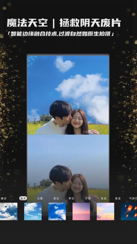 1. AI驱动的智能修图:全新版本搭载深度学习算法,可自动识别照片主体并精准应用美颜、换天空、双重曝光等特效,例如通过“魔法天空”功能一键替换背景为晚霞或星空,边缘过渡自然无破绽。