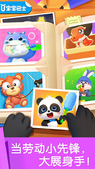 《宝宝劳动小能手先行服》是宝宝巴士专为2-5岁幼儿打造的益智互动游戏,以可爱画风与真人语音引导为核心,通过模拟刷牙、整理玩具、水果拼贴、果园采摘等真实生活场景,帮助孩子在趣味操作中掌握分类收纳、清洁整理、手眼协调等基础技能。游戏涵盖自理、服务、工艺、种植四大模块,难度由浅入深,结合语音提示与动画反馈,让孩子在玩乐中建立劳动习惯,培养独立性与责任感。