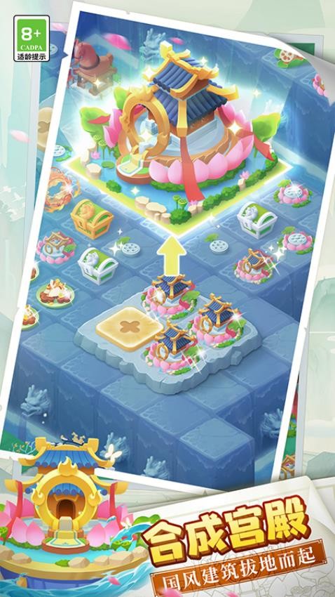 传说中的合合岛移植版》是一款以国风美学为基底、融合合成模拟经营元素的安卓休闲手游游戏以“三合一、五合二”的合成机制为核心,玩家通过拖拽合并物品解锁嫦娥、哪吒等神话角色,建造广寒月宫、酒池玉台等特色建筑,并经营一座充满东方奇幻色彩的岛屿。游戏内包含神兽岛、创意烹饪、限时活动等多元玩法,结合动态天气系统、昼夜交替与物理碰撞机制,打造出沉浸式国风童话世界。玩家可自由规划岛屿布局,与好友交换稀有资源,参与“秘匣探宝”“合并竞技”等主题活动,解锁超过500种可交互元素,体验从基础合成到策略规划的深度乐趣。
