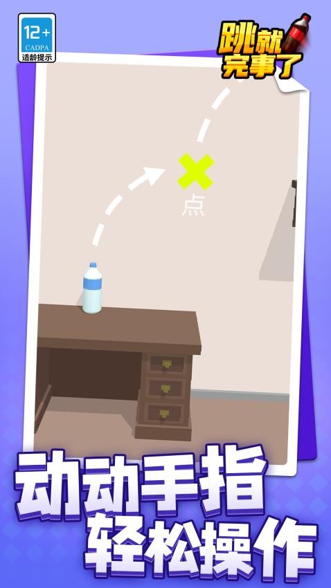 《跳就完事了移植版》是一款基于经典跳跃玩法深度优化的安卓休闲益智手游,移植自PC端热门作品并针对移动端特性进行全面适配。游戏以操控矿泉水瓶为核心机制,玩家需在客厅、厨房办公室等十余种家居场景中完成连续跳跃,通过精准控制点击时长调整弹跳力度,避开尖刺、滚烫锅具等动态障碍,最终抵达终点旗帜。移植版不仅保留了原版基于物理引擎的弹跳轨迹模拟,还新增了多人对战模式与创意工坊功能,支持玩家自定义关卡并分享至全球社区。游戏采用Q版卡通画风,搭配清脆的跳跃音效与动态光影效果,营造出轻松解压的沉浸式体验,同时提供超过200个特色关卡与50余款创意皮肤,满足不同玩家的个性化需求。