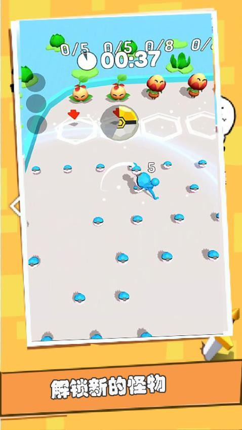 2. 怪物投喂与队伍组建:投喂怪物时需滑动屏幕控制小球方向,建议采用“提前量投喂”策略应对怪物移动轨迹。成功驯服怪物后,可在专属界面查看其属性特点,并编入队伍参与后续关卡战斗。高级怪物需分阶段投喂,例如先投喂8个小球后利用消化时间收集剩余资源。