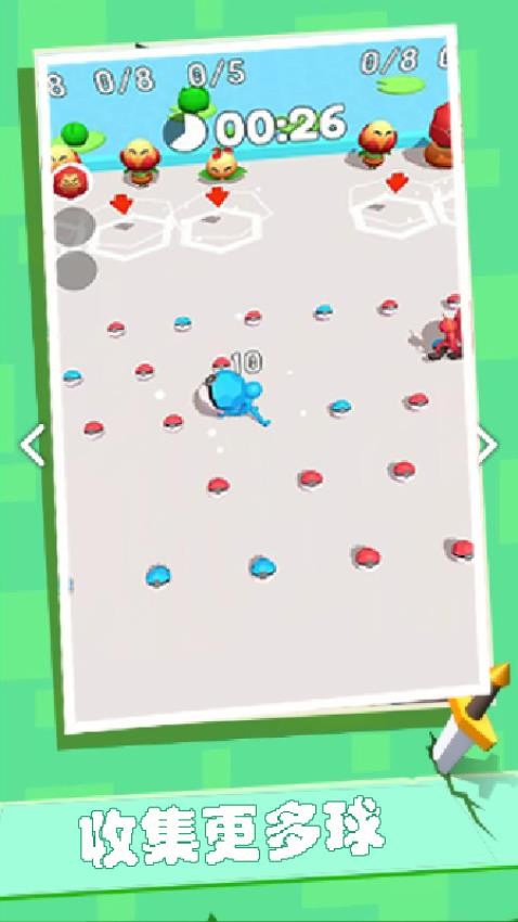 2. 怪物战斗机制:玩家可携带已解锁的怪物参与关卡末尾的3v3对战,通过点击屏幕释放攻击,击败对手可解锁新皮肤和配饰。