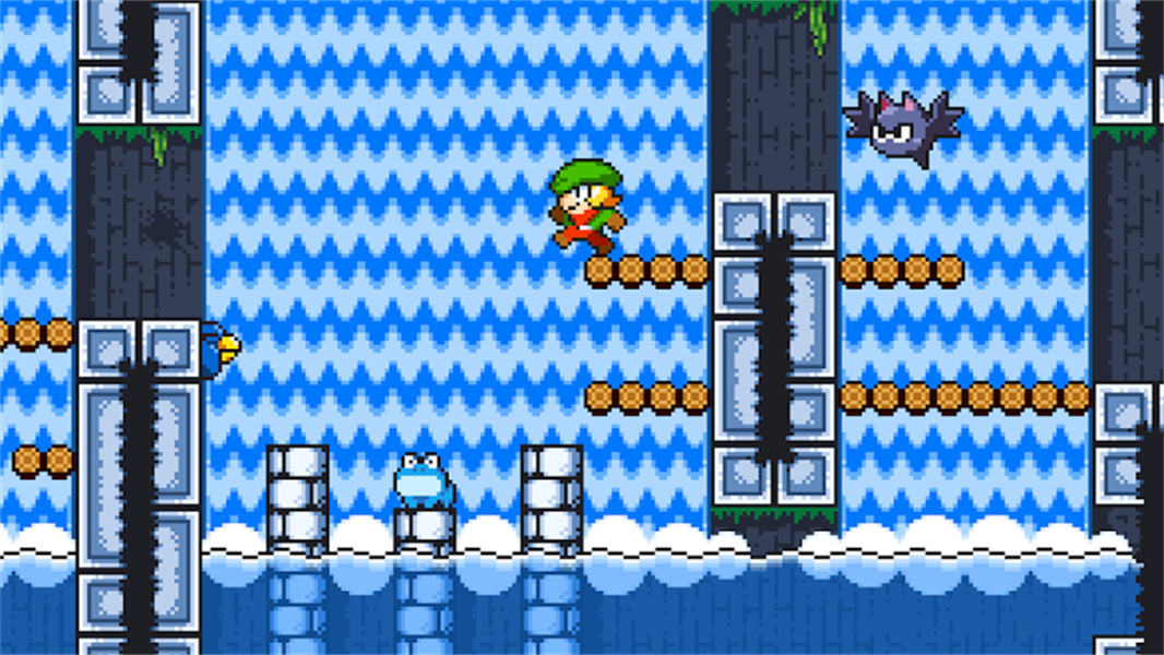 角色无法直接攻击敌人,需通过环境互动与道具组合化解危机。例如,用收集的“冰冻符文”冻结追击的史莱姆,或利用“弹簧陷阱”将敌人弹飞至尖刺上。游戏提供上百种装备与道具,玩家可自由搭配技能树,例如选择“敏捷流”提升跳跃高度与移动速度,或“解谜流”增强道具使用效率,形成多样化的通关策略。