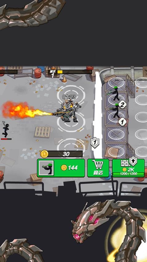 1. 兵种合成系统:玩家可通过拖拽同等级火柴人完成合成,生成更高等级的作战单位,例如将两个基础士兵合成为强力近战单位,显著提升防御能力。