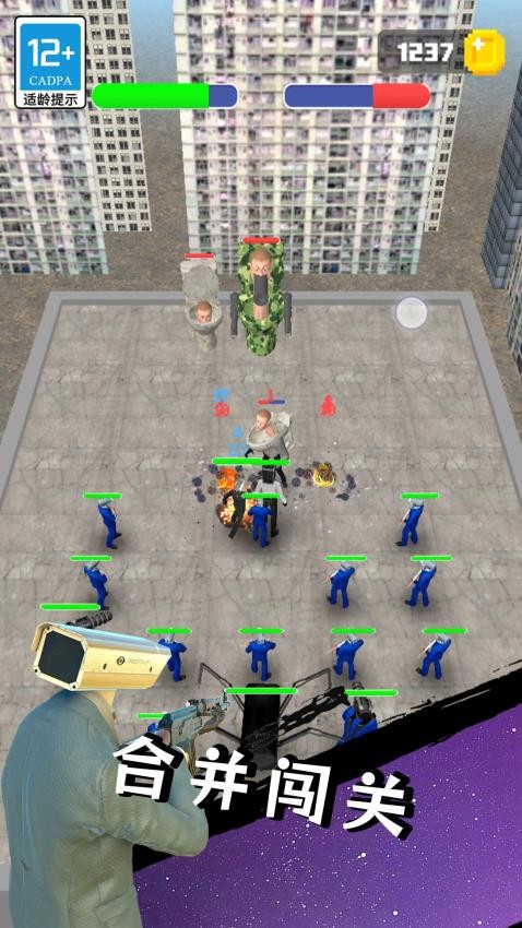 2. 物理引擎驱动:游戏采用动态物理引擎,马桶人被击飞时会撞碎场景中的肥皂盒,泰坦人倒地会压塌洗手台,连卫生纸炮弹的抛物线轨迹都受重力影响,增强了战斗的真实感与趣味性。