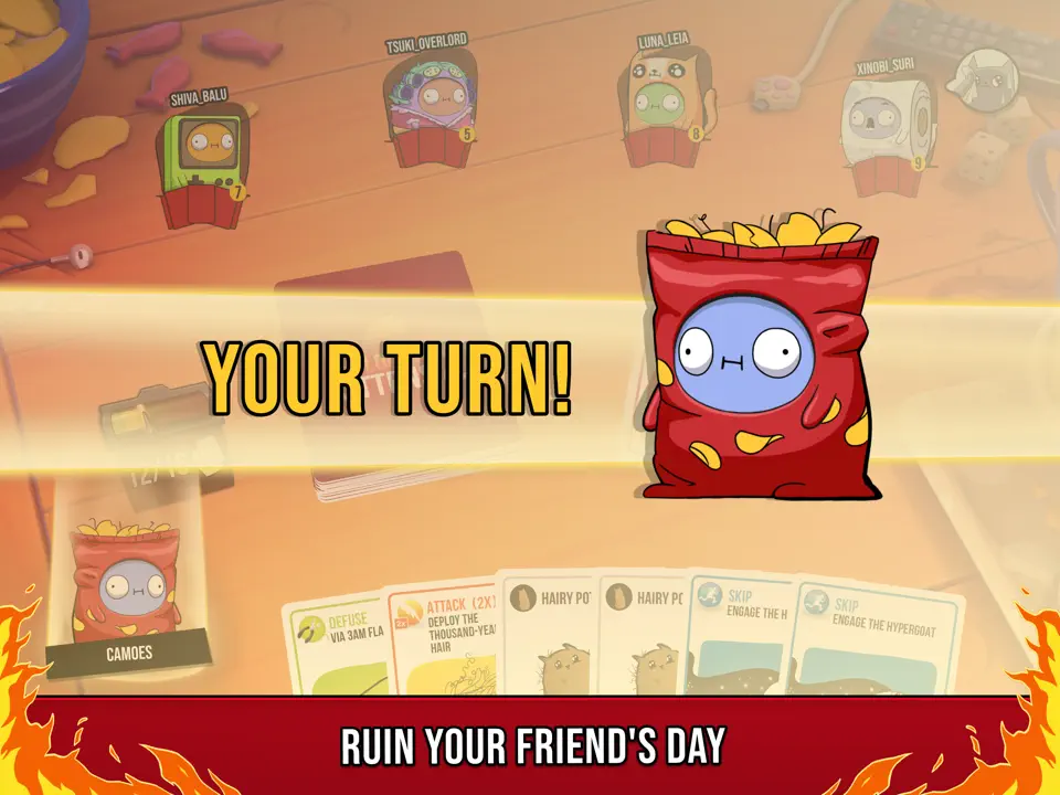 1. 策略与运气结合:每张卡牌功能独特,组合方式多样,玩家需根据局势灵活调整策略,同时依赖抽牌运气避免“爆炸猫”陷阱,胜负充满变数。例如,“一对”“三张”“一条龙”等组合卡牌可抢夺资源或回收关键牌,而“预见”卡能查看牌堆顶部三张牌,帮助规划抽牌顺序。