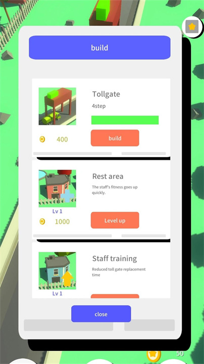 3. 员工培育系统:招募并培训员工提升服务效率,不同岗位(如收费员、维修工)的技能组合影响车流处理速度与收益。