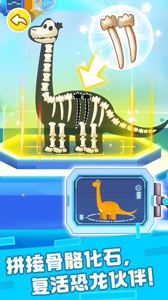 3. 三号星球:复活远古生命:腕龙提供化石碎片请求复活同伴,玩家需挖掘更多骨骼完成拼图,再利用能量矿石驱动建筑机器人建造恐龙乐园,解锁滑齿龙、棘龙等新物种。