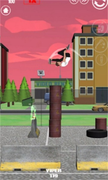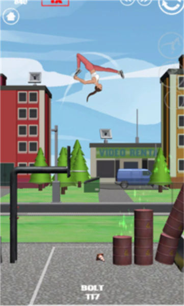 3. 动态障碍应对:面对移动卡车等动态障碍,需在角色腾空阶段长按屏幕增加滞空时间,待卡车行驶至目标落点下方时释放,配合“双梭子鱼翻转”触发动态物理反馈,获得额外分数加成。