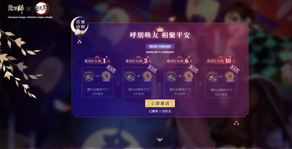 当大人成功邀请10位好友,可获得奖励御行达摩碎片*4、金币*100000。
