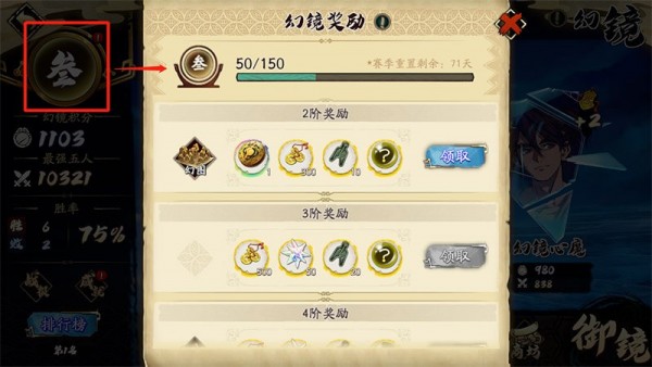 4、累计幻镜历练值可提升幻镜位阶,点击幻镜界面左侧位阶图标领取对应位阶的奖励(时之印、铜钱、蚀之晶、幻镜重宝、魂石、幻图等等)。
