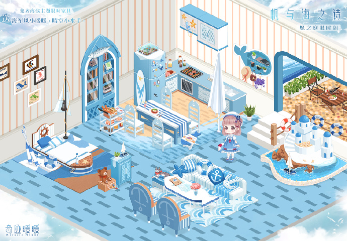 5月20日—5月26日,愿之庭限时抽奖阁“帆与海之诗”复刻,集齐所有限时家具可解锁小暖暖装扮“晴空小水手”!