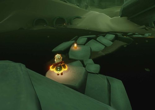 季节蜡烛在边陲荒漠最右侧的植物后面,也就是破塔的后方。