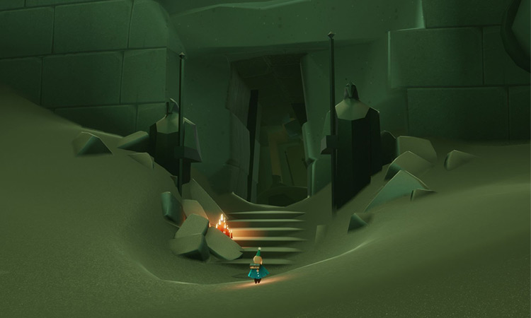 大蜡烛在通道一龙图的入口处,位于石台阶上。