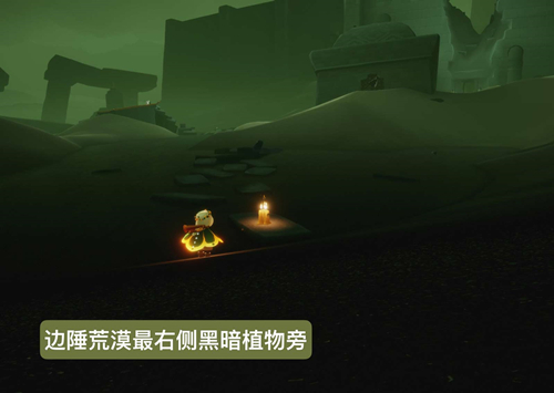 季节蜡烛在边陲荒漠最右侧的植物后面,也就是破塔的后方。