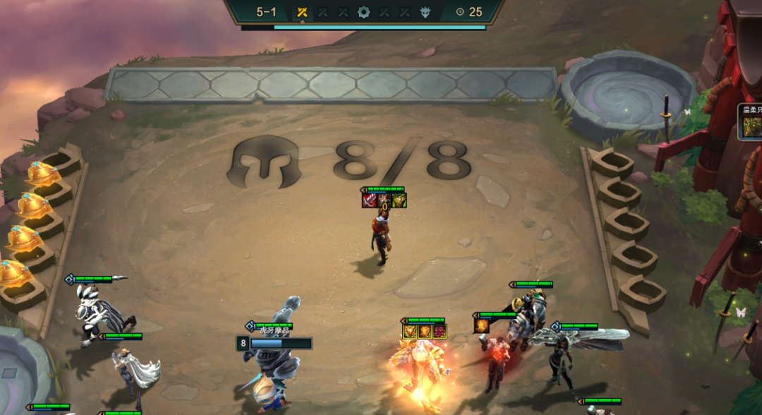 来到5阶段升级8人口后就搜卡开2铁甲羁绊,找到阿克尚和卢锡安2星,在大部分棋子2星后,就可攒钱准备拉9人口。这时候的重点就调整站位,避免卢锡安被敌方偷就好。