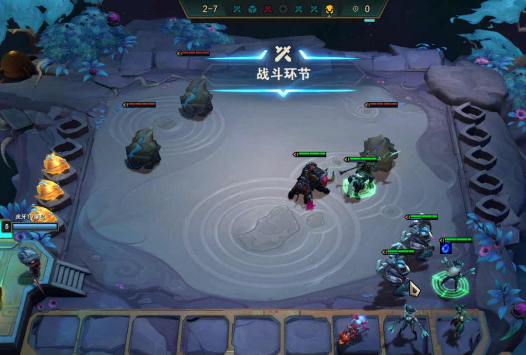5阶段,赌狗玩法通常我们上到7人口,看情况找女枪三星或攒钱上8人口。运营玩法这时候升级8人口,开3铁甲,主女枪三星,如果女枪来的少考虑换大头与洛。