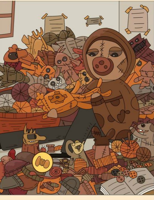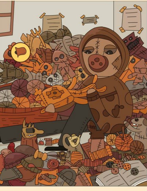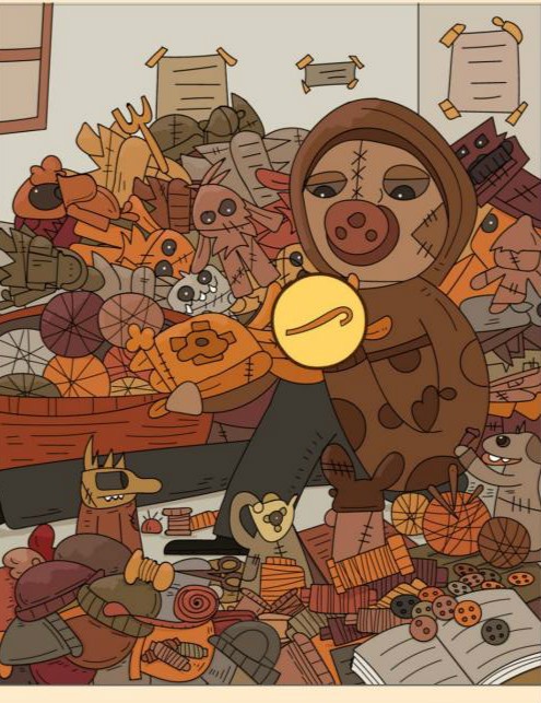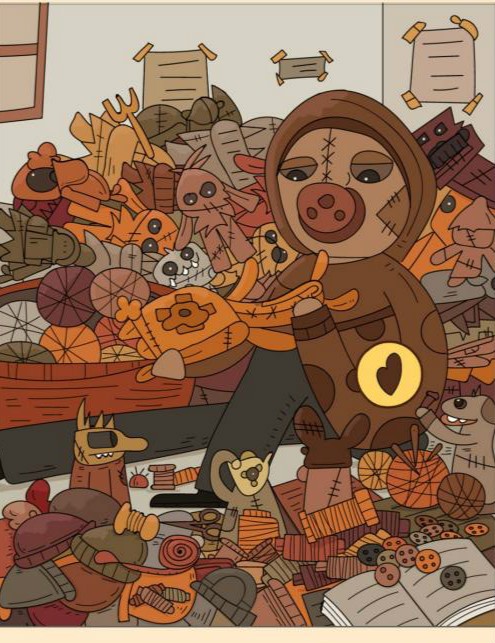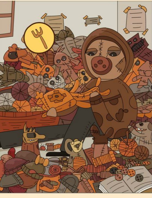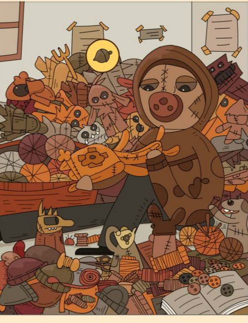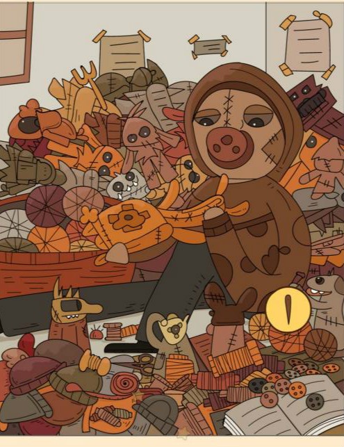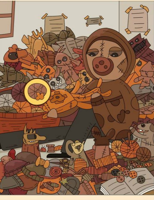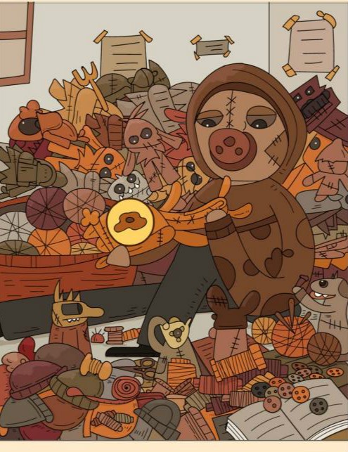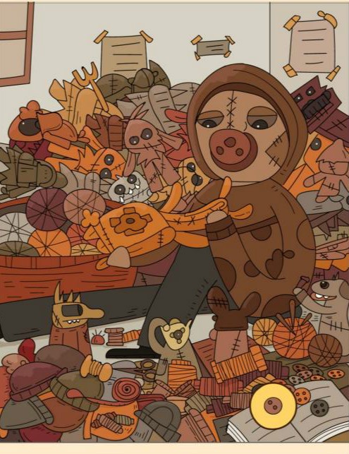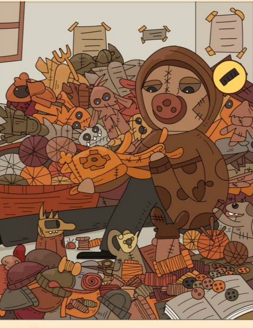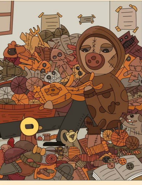 6、针在人物旁边的线团上。