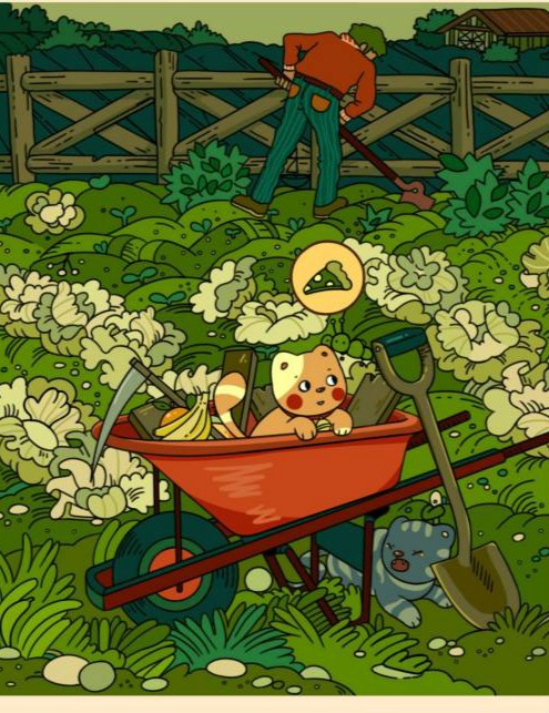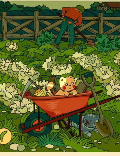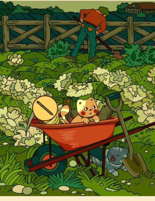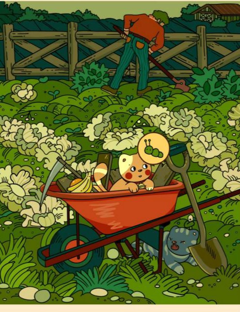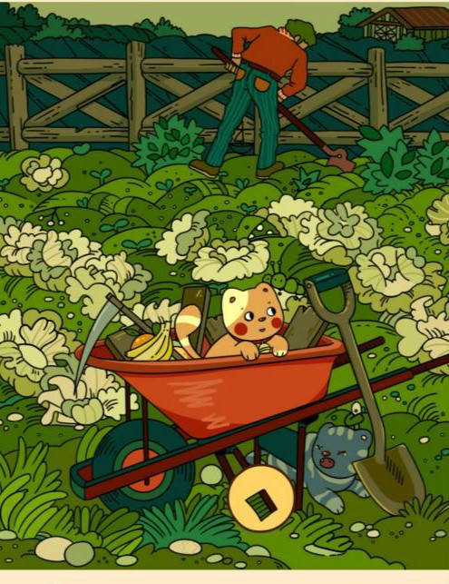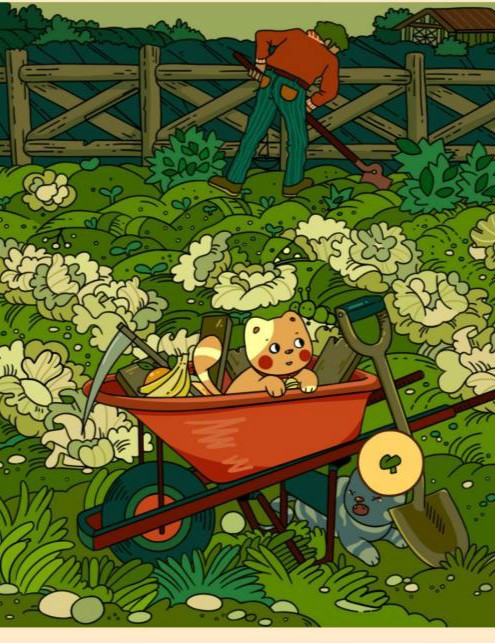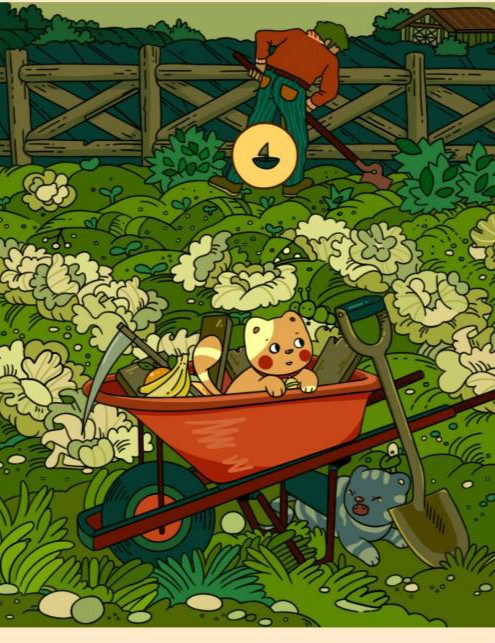 3、手套在推车钱的菜地里。