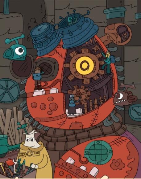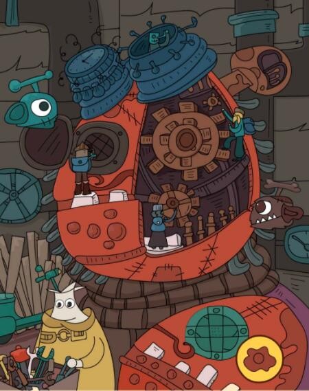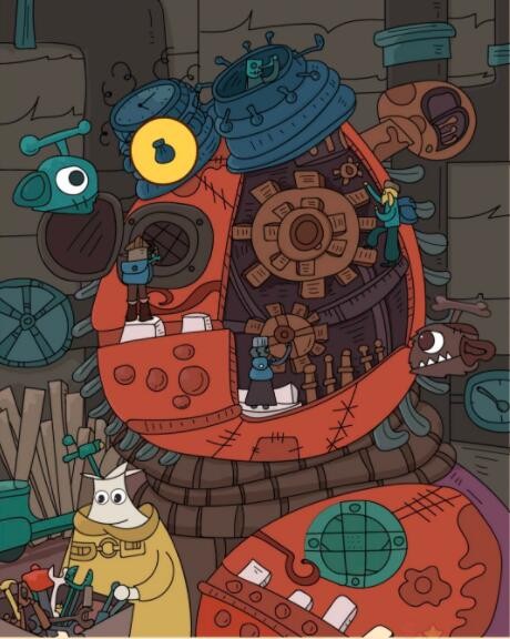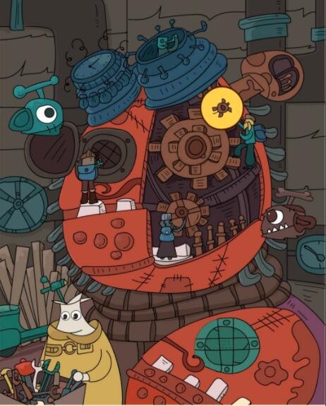6、海龟在中间机器的齿轮上。