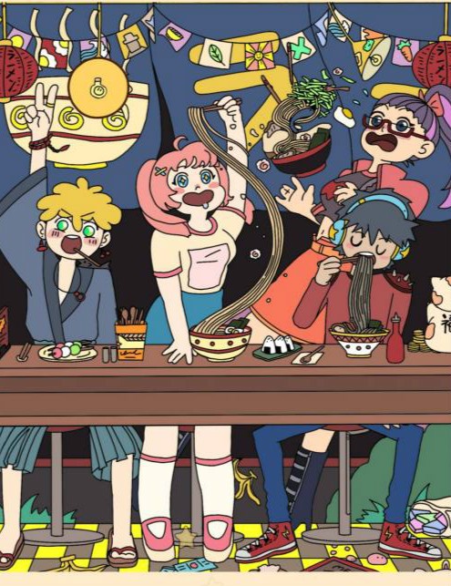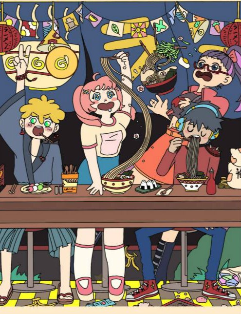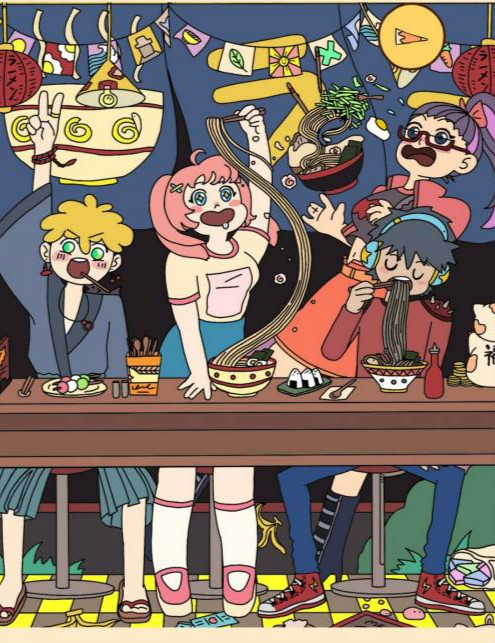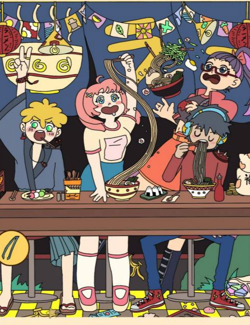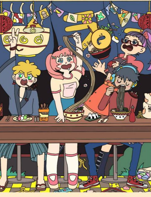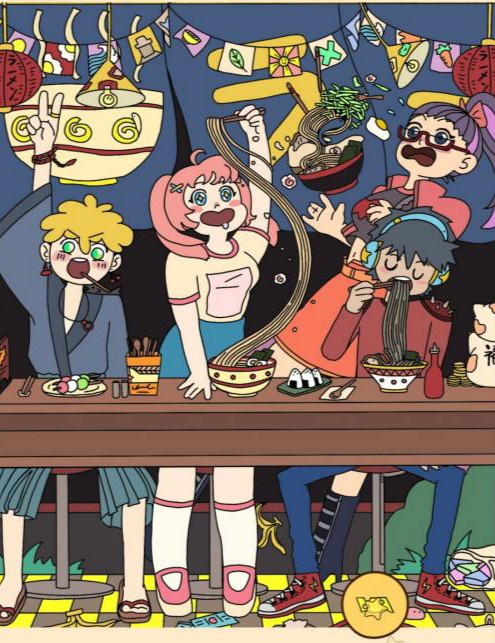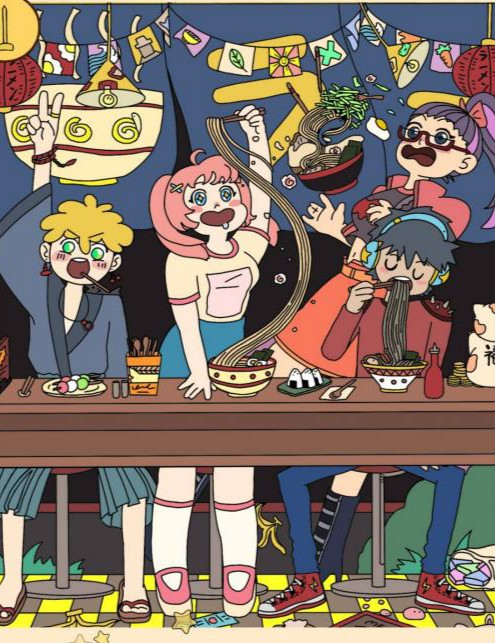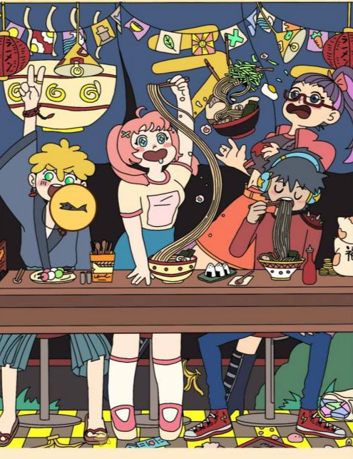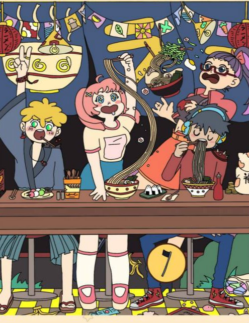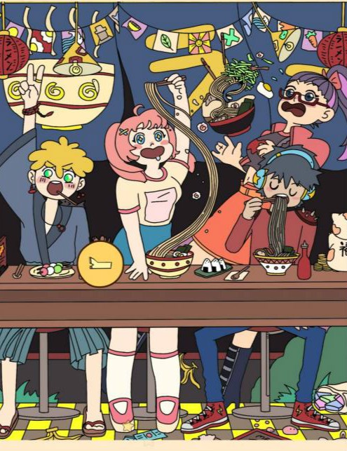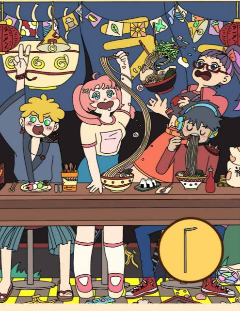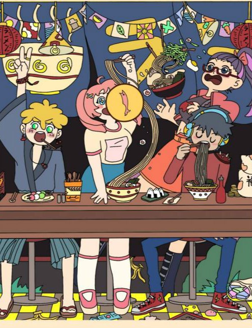 鲸鱼在中间的拉面碗里。