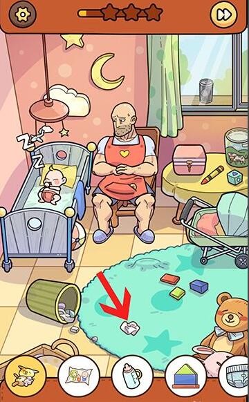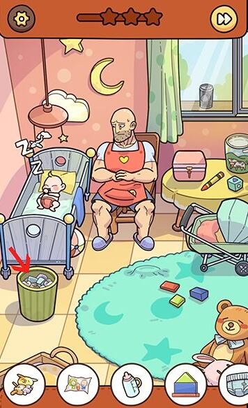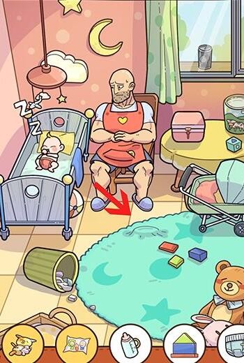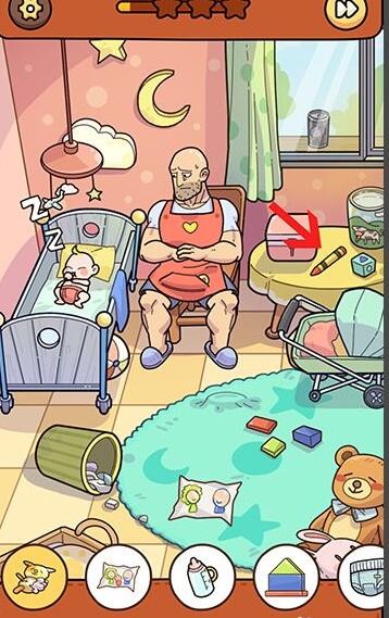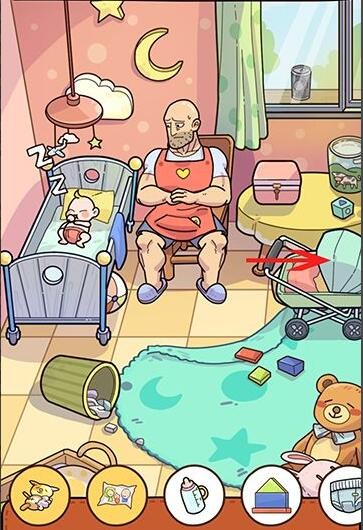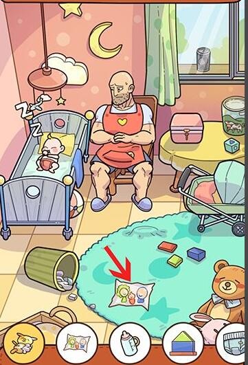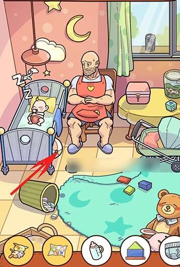 9、来回滑动婴儿床,婴儿睡着后,点击手摇铃收起,奶爸的日常通关成功。