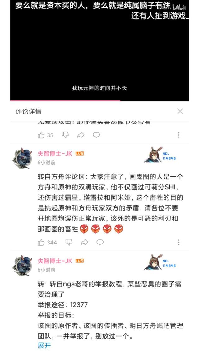 也可以从BiliBili了解到,发图的人并不是明日方舟的喜爱者(之前也有不少的前科),是明日方舟和原神的双黑,明日方舟和原神双方吵起来应该也是这个司马仔最想看到的场面,也希望大家把矛头放在发图者上,上升到游戏和理智玩家才是最不理智的事情。