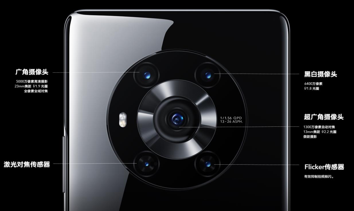 荣耀magic3后置5000万像素广角摄像头+ 6400万像素黑白摄像头+1300万像素超广角摄像头,最大10倍数字变焦,前置1300万像素广角摄像头。