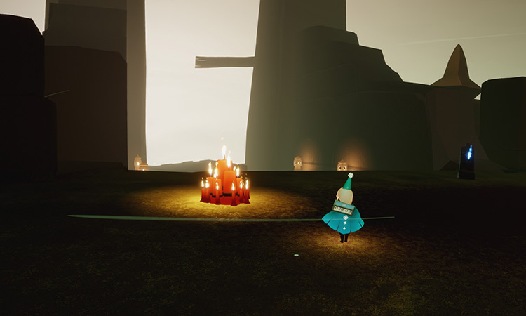 大蜡烛在三塔图的光翼小岛上,位于小金人身后。