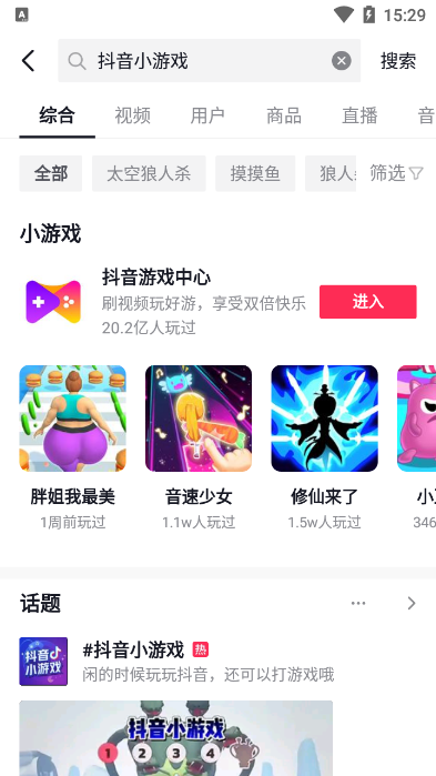 点击进入抖音游戏中心,选择自己喜欢的一款游戏