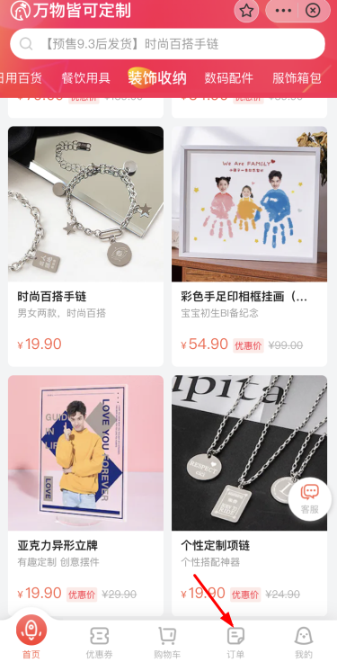 2、进入小程序后,在下方的功能栏中点击【订单】;