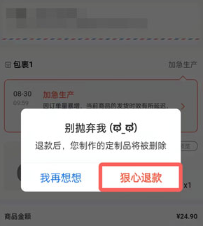 另外还有小伙伴反应称订单里面没有退款的按钮,一般来说这样的情况是已经在生产了,东西已经生产了不能退款的。