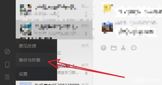 然后再后点击微信电脑版主界面左下角的主菜单按钮,在弹出菜单中选择备份与恢复的菜单项。