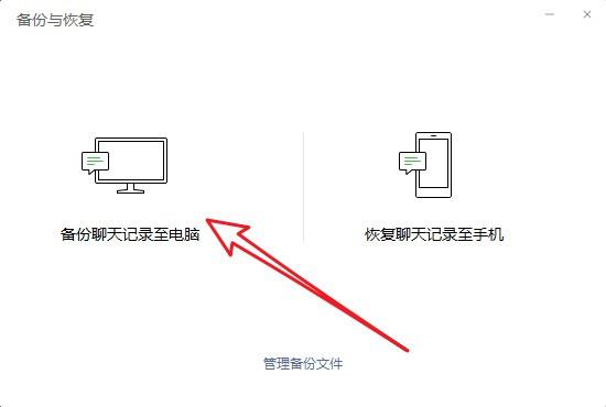 接下来在打开的备份与恢复窗口中点击备份聊天记录至电脑的图标。
