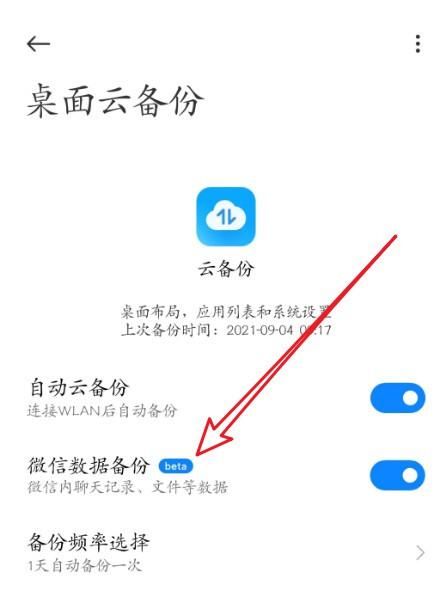 另外一些手机的云盘也具有自动备份微信聊天记录的功能,比如笔者的小米手机Miui云盘就可以选择备份微信数据,可以自动备份微信的聊天记录与文件等。使用该功能也可以方便的备份聊天记录到云端。