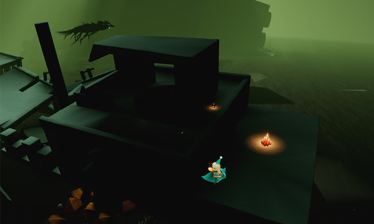 大蜡烛在三塔图的光翼小岛上,位于小金人身后。