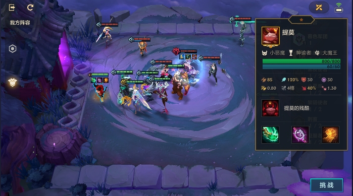 4:最重要是就是站位,要保证大魔王是最后一个阵亡,锤石,泰坦,狗熊放在第一排,凯南放在第二排最右边,提莫就放在第一排最左边,可能会有失误需要多试几次。