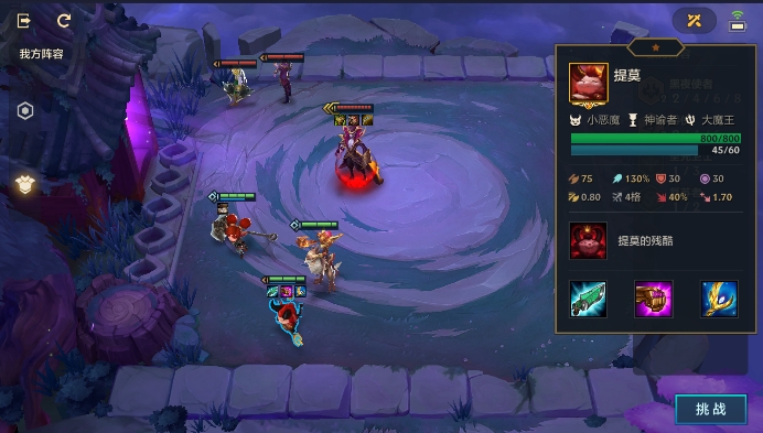 2、洛会把提莫之外的小恶魔全部击杀,然后触发大魔王羁绊,直接秒杀通关。