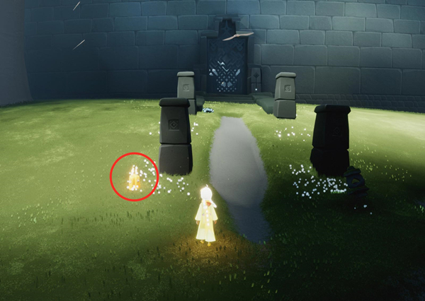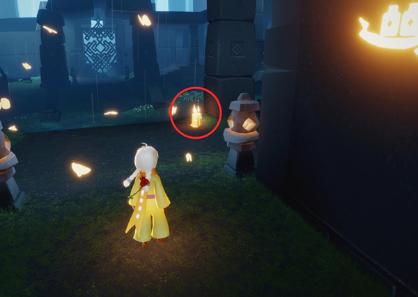 季节蜡烛在第一扇大门前方,位于左边的石柱子边上。