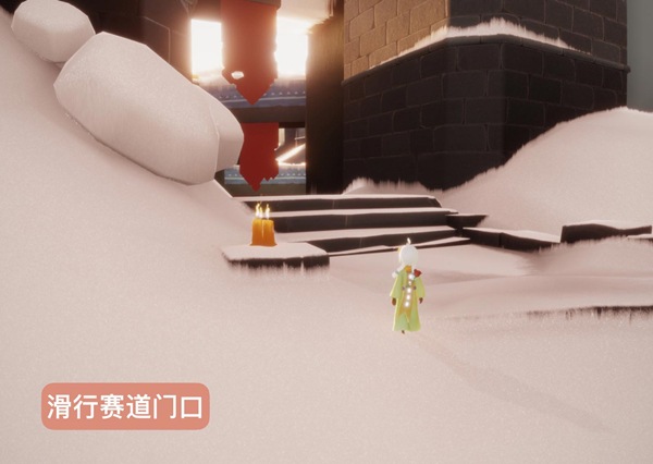 季节蜡烛在滑行赛道门口,位于左边的石墩子上。
