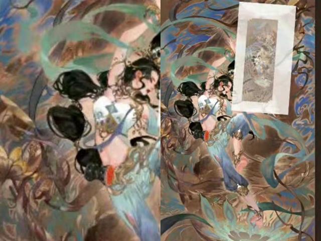 把图片放大后,中心还有联动皮肤的剪影。还有许多青绿色的飘带环绕,显然是女英雄了。根据知名博主阿拿的透露,皮肤确实给到了貂蝉。部分将信将疑的玩家也不用质疑,因为她有特权,经常能提前看到新皮肤,并且之前也率先爆料过多个有关新皮肤的消息。因此,这里可以确定敦煌联动给到了貂蝉。